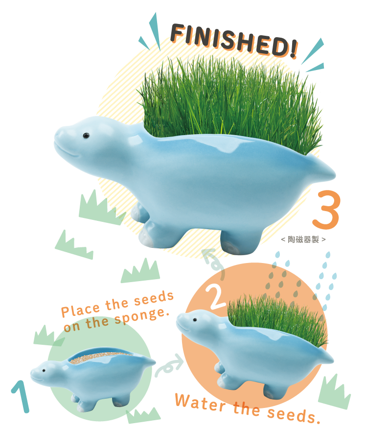 愛くるしい表情の恐竜の背中で、植物の成長を観察、お部屋のインテリアとして飾っておくことも可能です。